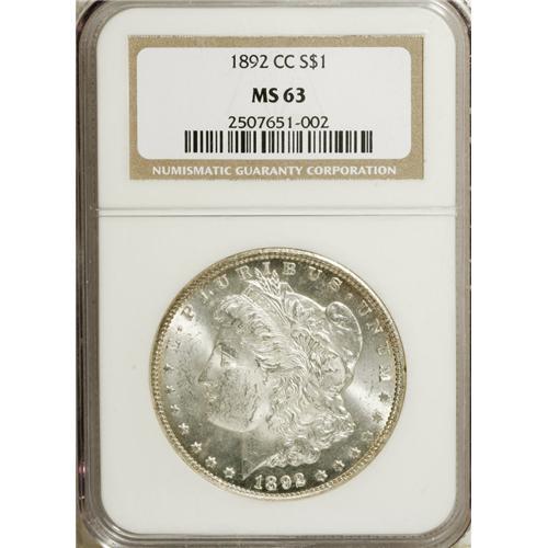 <B>1892-CC S$1 MS63 NGC.</B></I> Highly lustrous and largely untoned with a hint of peripheral patina and minor, scattered abrasions. A better-date Carson City dollar and worthwhile in all Uncirculated grades.<BR><BR><b>Shipping:</b> Coins & Currency (<a target="_blank" href="http://www.heritageauctions.com/common/shipping.php">view shipping information</a>)