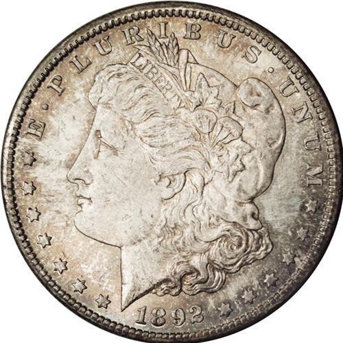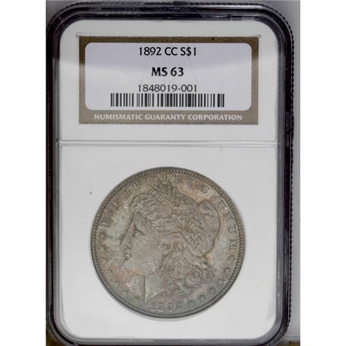 1892-CC S$1 MS63 NGC. Orange, lime, and dove-gray toni 1892-CC[img border='0' src='http://www.herita