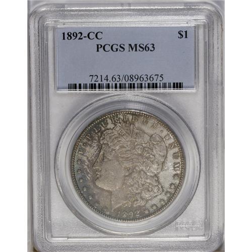 1892-CC S$1 MS63 PCGS. Fully patinated in pearl-gray,