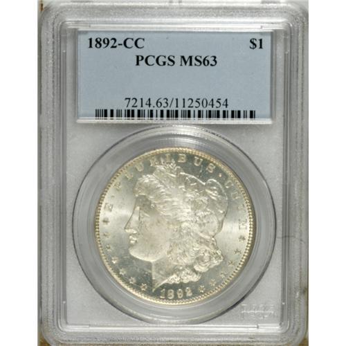 <B>1892-CC S$1 MS63 PCGS.</B></I> Highly lustrous and well struck overall, though the hair above the ear shows a trace of softness. A blush of hazy rose-tinged toning is noted on the cheek.<BR><BR><b>Shipping:</b> Coins & Currency (<a target="_blank" href="http://www.heritageauctions.com/common/shipping.php">view shipping information</a>)