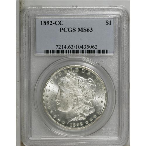 1892-CC S$1 MS63 PCGS. Highly lustrous with well-defin