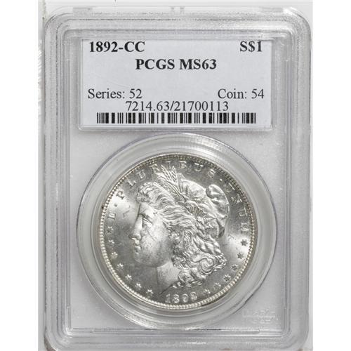 1892-CC S$1 MS63 PCGS. Select and nicely struck, this