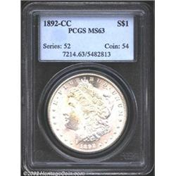 1892-CC S$1 MS63 PCGS. The portrait has a blush of apricot patina. A lustrous and mildly prooflike e