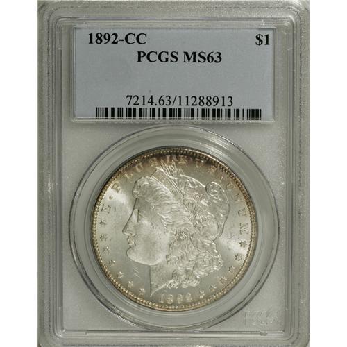 <B>1892-CC S$1 MS63 PCGS.</B></I> This lustrous better date Carson City silver dollar appears brilliant at first glance, but does have a blush of russet-red toning across portions of the peripheries. Sharply struck and reasonably preserved.<BR><BR><b>Shipping:</b> Coins & Currency (<a target="_blank" href="http://www.heritageauctions.com/common/shipping.php">view shipping information</a>)