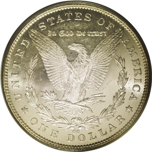 <B>1892-CC<img border='0' src='http://www.heritagecoins.com/images/star.gif' width=10 height=10>$1> MS63 Prooflike PCGS.</B></I> Superbly contrasting, deeply mirrored fields shine against the silvery devices. A popular CC-mint issue, and quite scarce with the Prooflike designation. The Select grade is due to a slight milkiness noted in the obverse fields, but the few abrasions noted are consistent with the grade.