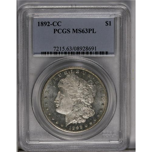 1892-CC S$1 MS63 Prooflike PCGS. Superbly contrasting, 1892-CC