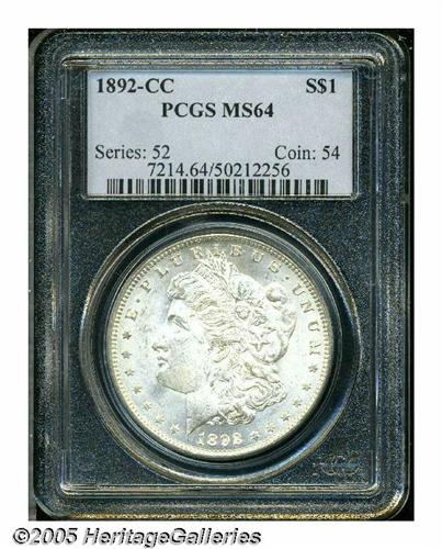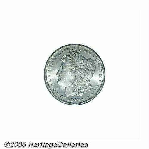 <B>1892-CC<S$1> MS64 PCGS.</B></I> Highly lustrous and fully brilliant with frosty silver surfaces throughout. Both obverse and reverse are sharply detailed, and only light surface marks may be seen. The reverse is at least a full point finer than the obverse.