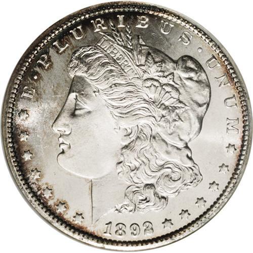 <B>1892-CC<img border='0' src='http://www.heritagecoins.com/images/star.gif' width=10 height=10>$1> MS65 NGC.</B></I> Lustrous and well struck with golden-brown and blue-green color at the borders. The 2 in the date is filled. Struck from lightly clashed dies. While more than a million 1892-CC Dollars were struck, the date is actually more scarce than the lower mintage 1881-CC and 1885-CC issues. Census: 122 in 65, 13 finer (3/06). <BR><BR><B>Important notice:</B> Heritage usually auctions material at the rate of 200-250 lots per hour. On some occasions eBay Live bid software or the Internet may not be able to keep up with the pace of the auction. We recommend placing a realistic absentee bid now as insurance to avoid disappointment. Occasionally the auctioneer may eliminate or reject an eBay Live bid, and the auctioneer may also reopen a lot after the close of the eBay live bidding (usually because we missed an audience bid), and may reject your bid even if it shows you as the winning bidder. By bidding via eBay Live, you agree that Heritage may award the lot to another bidder at its sole discretion under the circumstances described above or any other reasonable circumstances. Since eBay bids are not shown to us until we open the lot on the floor, we treat those bids just like floor bids. In most cases the floor responds before the eBay bid is presented to us, due to Internet lag time, so for consistency we have made it a policy that floor bids are always considered first over tie eBay live bids. Also please note that all Heritage lots purchased through eBay Live carry a 20% Buyer's Premium. Please make sure you read the Terms and Conditions before you bid. This lot is being auctioned in conjunction with a live floor auction by Heritage Galleries & Auctioneers. All final auction and invoice information will be supplied by Heritage Galleries & Auctioneers, and all other information should be considered preliminary. Lot:3599 <BR><BR><B>Winning Notification and Billing:</B> After the FINAL session in this auction is complete, Heritage will send e-mail and snail mail invoices. This process normally takes several days. All final auction and invoice information will be supplied by Heritage Galleries & Auctioneers, and all other information should be considered preliminary. <BR><BR>This auction will be conducted on a live auction floor and over the Internet through eBay Live. If you choose to place an absentee bid, please take a moment to <font color='#0000ff'><u><a href='http://pages.ebay.com/liveauctions/help/before/laabsentee.html'>learn how eBay Live absentee bidding works</a></u></font><font color='#000000'>