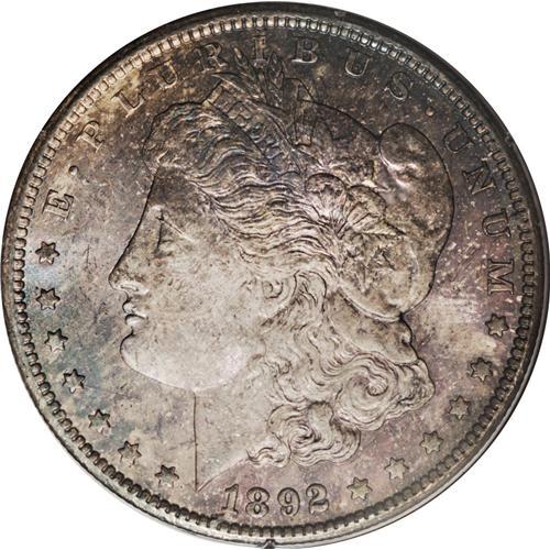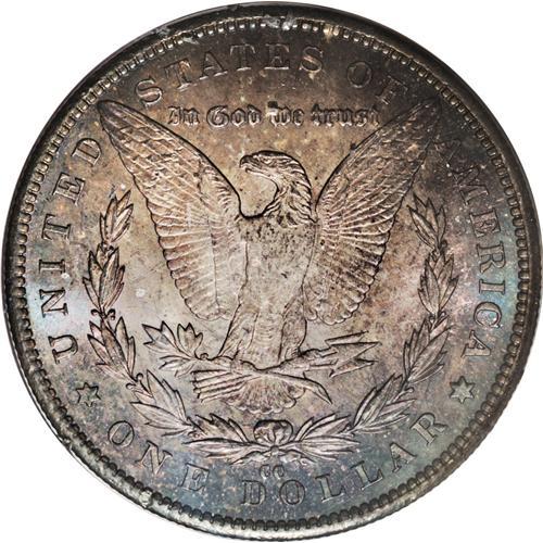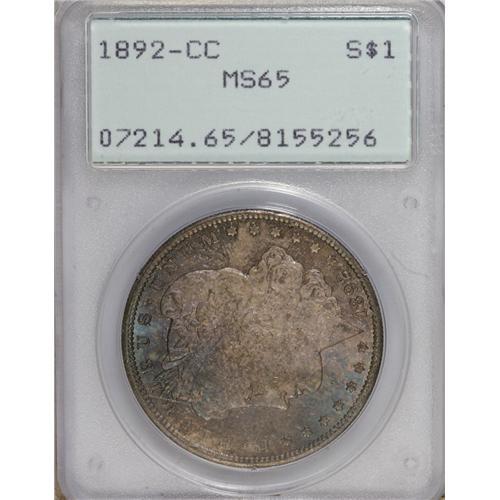 1892-CC S$1 MS65 PCGS. A mixture of deep gray, rose, a