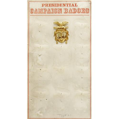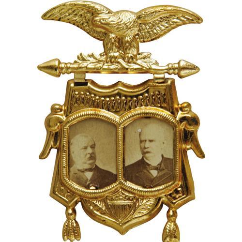 <B>Scarce 1892 Cleveland & Stevenson Jugate Cardboard Photo Pin on Original Store Display Card.</B></I> Cleveland & Stevenson jugates are much tougher than those picturing Cleveland's other two running mates, Hendricks (1884), and Thurman (1888). This is a superb, essentially mint example, and especially nice in this form. Card measures 5.5" x 10". <I>From the Joe Brown Collection.</B></I>
