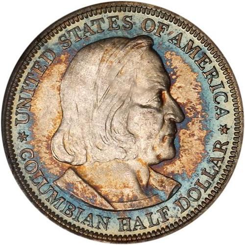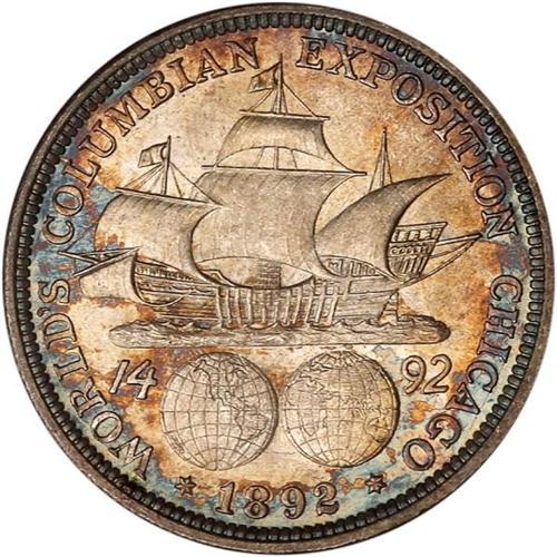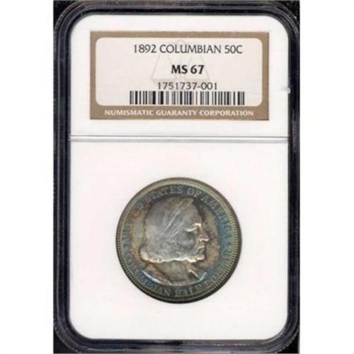 <b>1892 Columbian Half Dollar. NGC graded MS67.</b> A spot-free dazzler whose mint color shames just about any lesser Mint State Commemorative coin of this year. A touch of weakness is seen at head and sails on some of this issue, but here it is probably that the dies were spaced at exactly the right distance to prevent any weak metal flow in that area. The designs are very strong for the date <b>(PCGS # 9296)</b> <i>