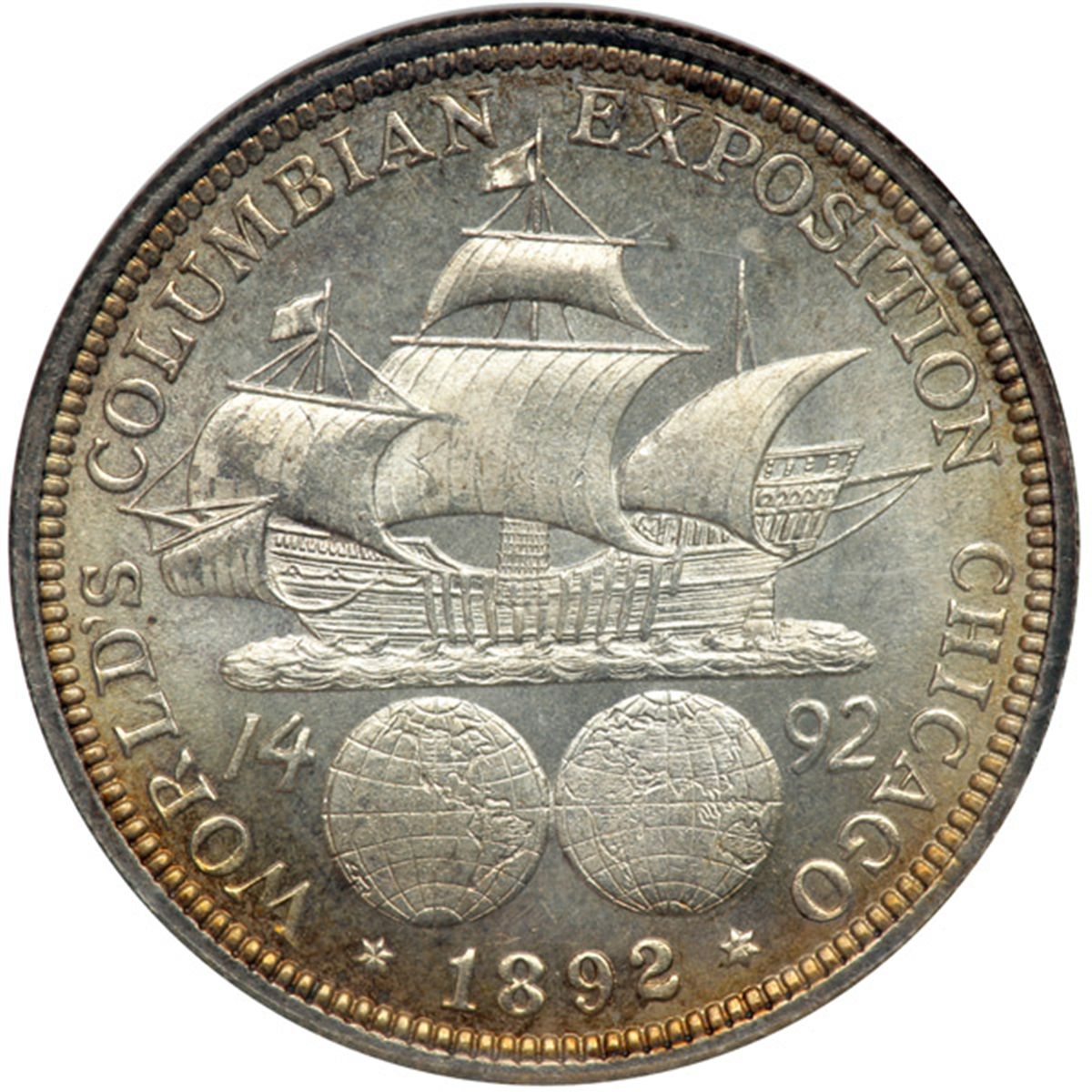 1892 Columbian Half Dollar. NGC graded MS-65. Lightly toned about the borders with slightly prooflike surfaces. In an old style holder. The Columbian was a prolific issue. That said, most were sold to the general public and to those who weren't coin collectors. Fast-foward to today and we find very few true Gems in the MS65 category have survived, with this being an entirely original, eye-appealing coin. It has all the virtues of its grade!