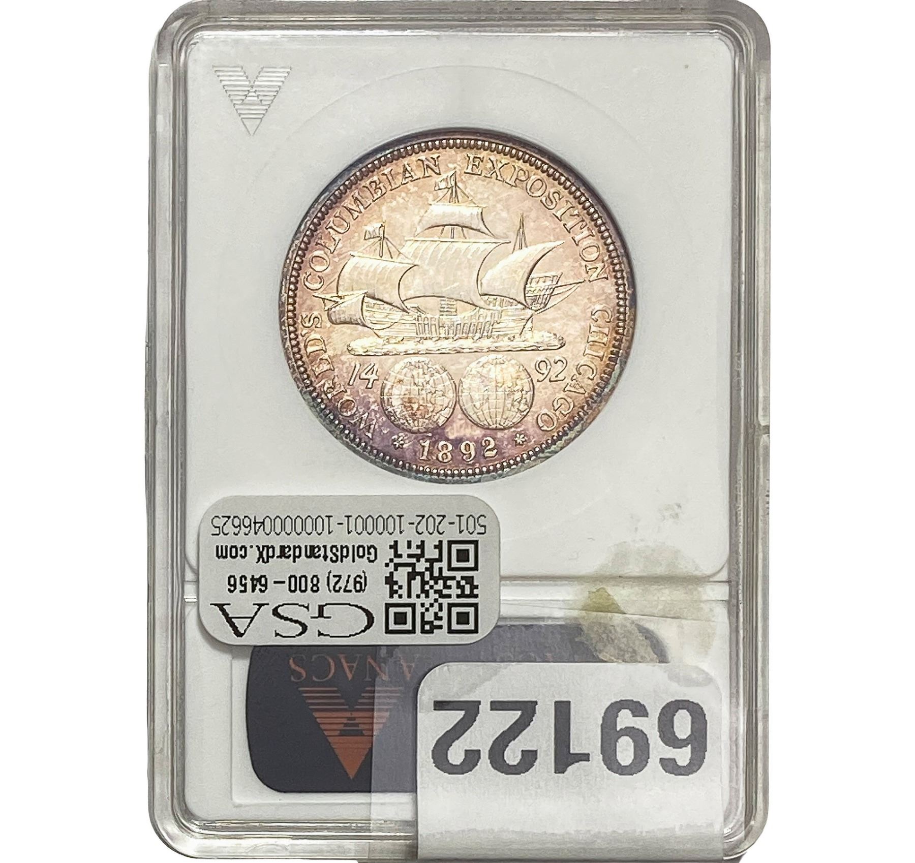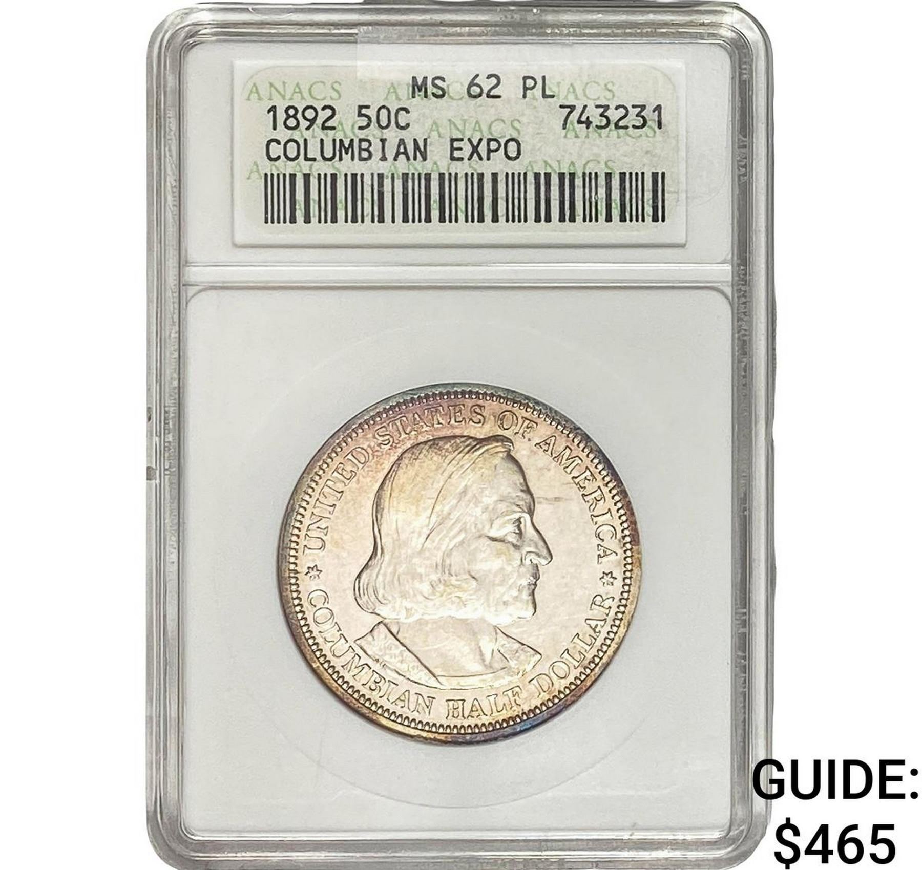 1892 Columbian Expo Half Dollar ANACS MS62 PL
