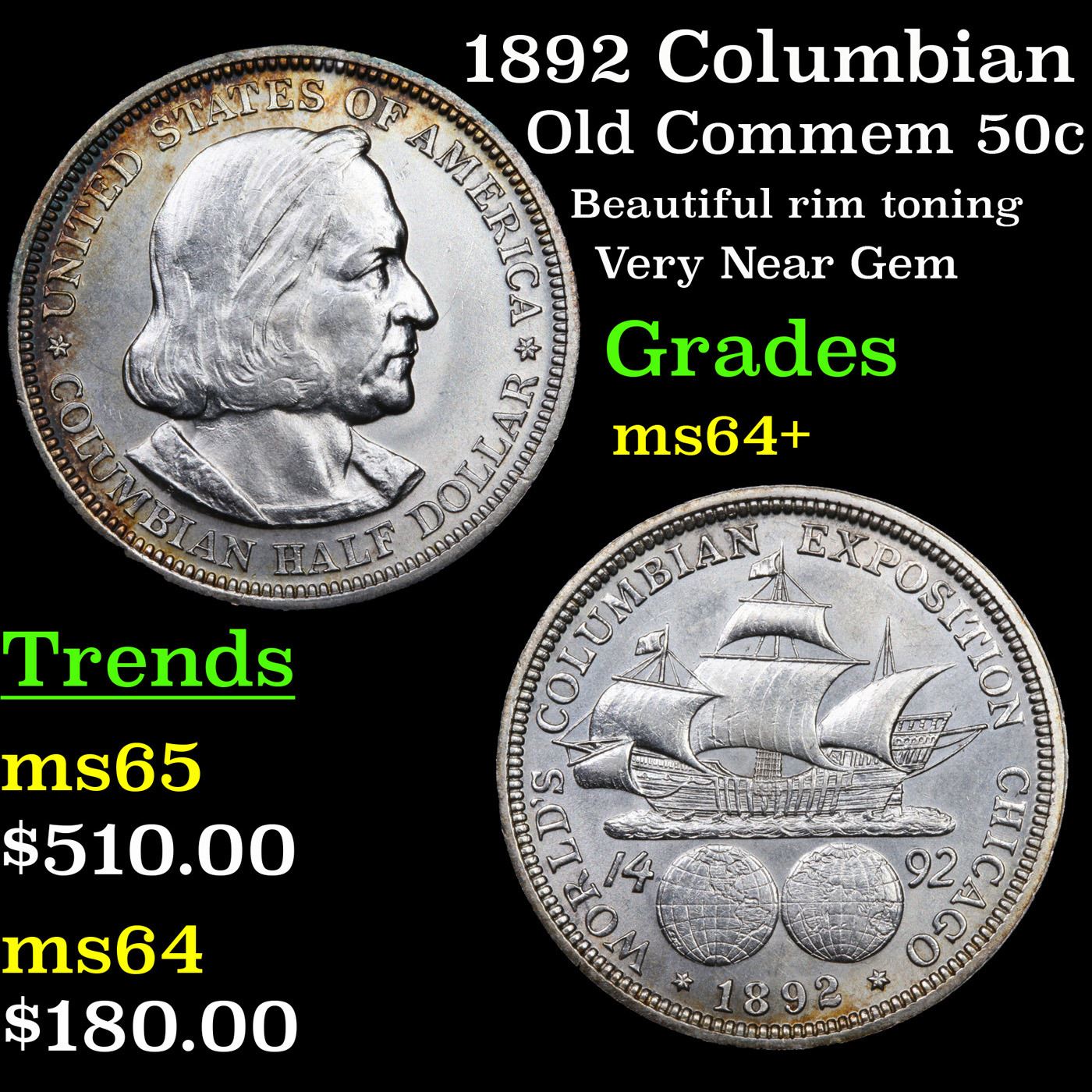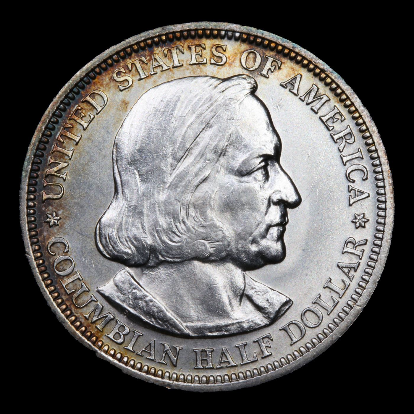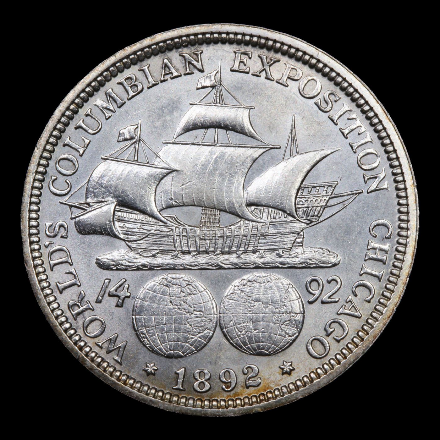 1892 Columbian Old Commem Half Dollar 50c Grades Choice+ Unc. The Columbus Half Dollar along with the Isabella Quarter were Minted in Honor of the 400th Anniversary of Columbus' Voyage to the New World. It was First Distributed at the Worlds Fair Honoring that Voyage. When Examining a Columbian Exposition Half Dollar, the First Points to Show Wear are Columbus’ Eyebrow, Cheek and the Hair Behind his Forehead and Jaw. On the Reverse, Check the Foresail and Sainsail, as well as the Right Side of the Eastern Hemisphere.