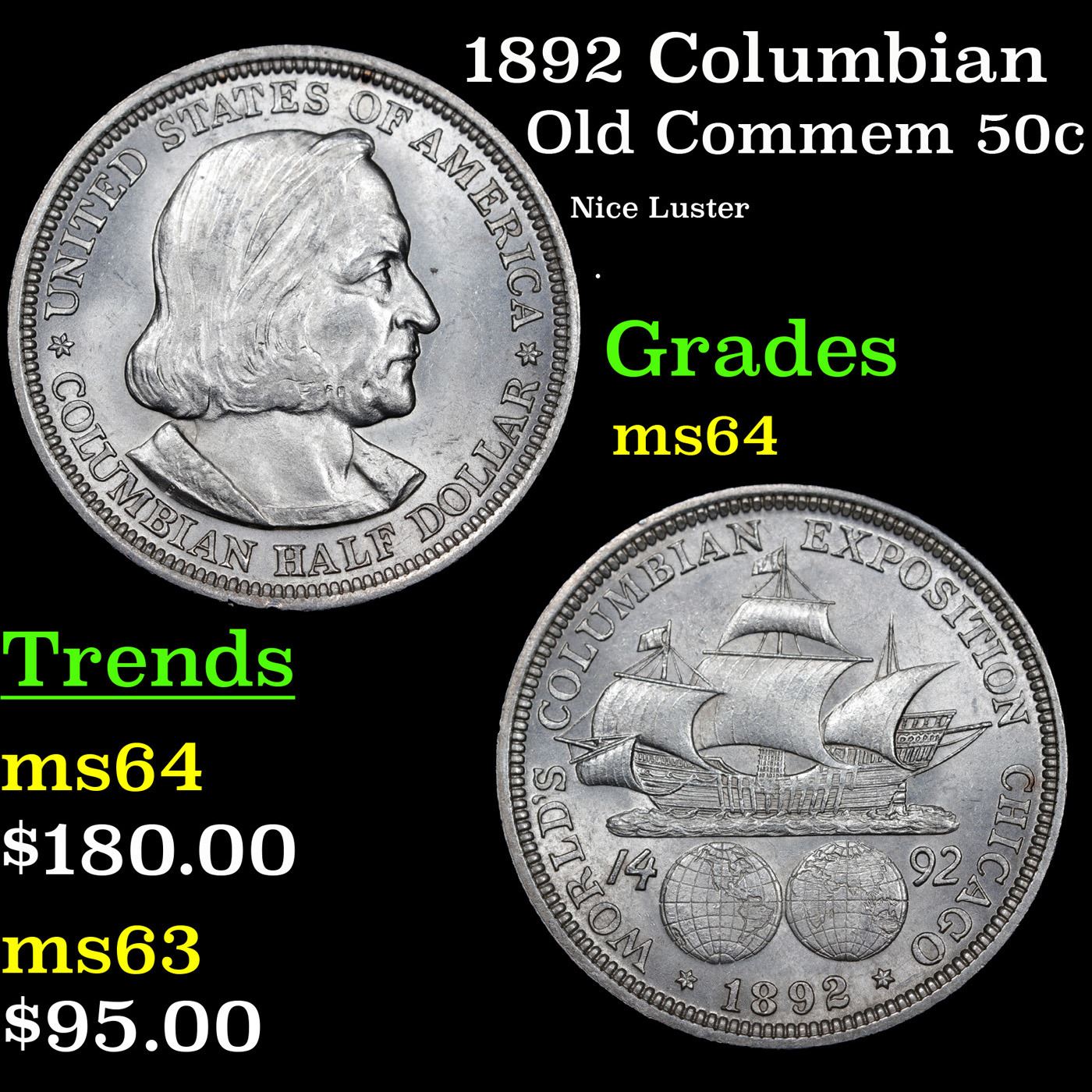 1892 Columbian Old Commem 50c Grades Choice Unc