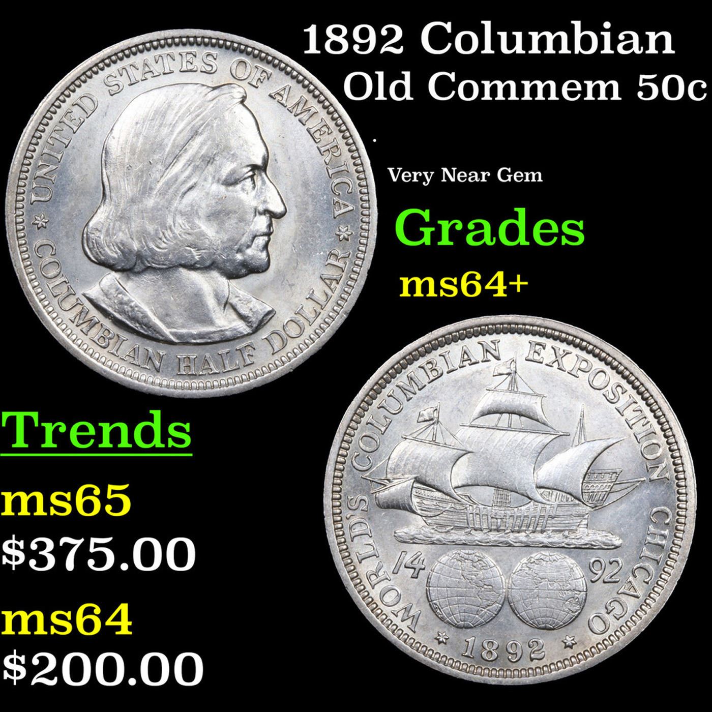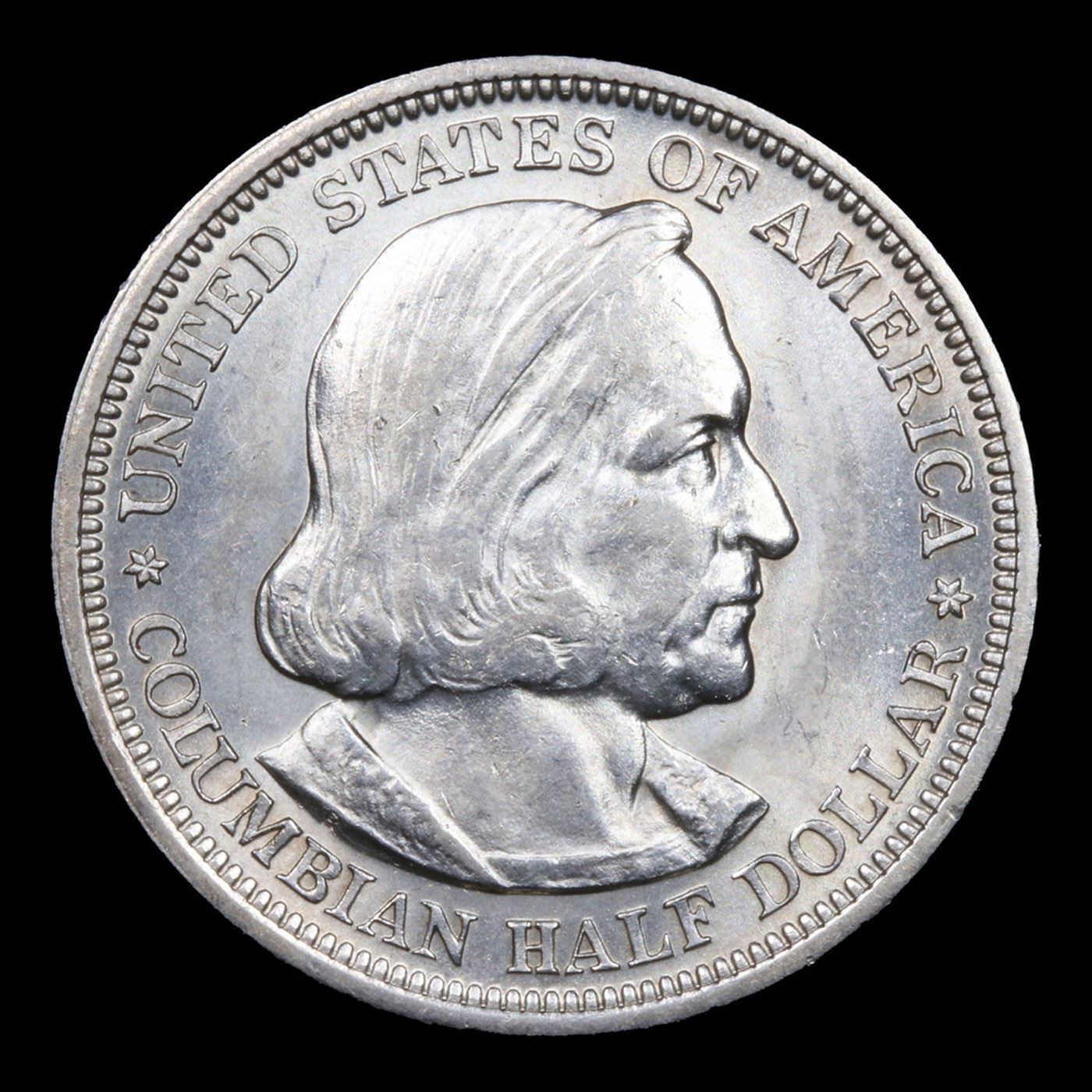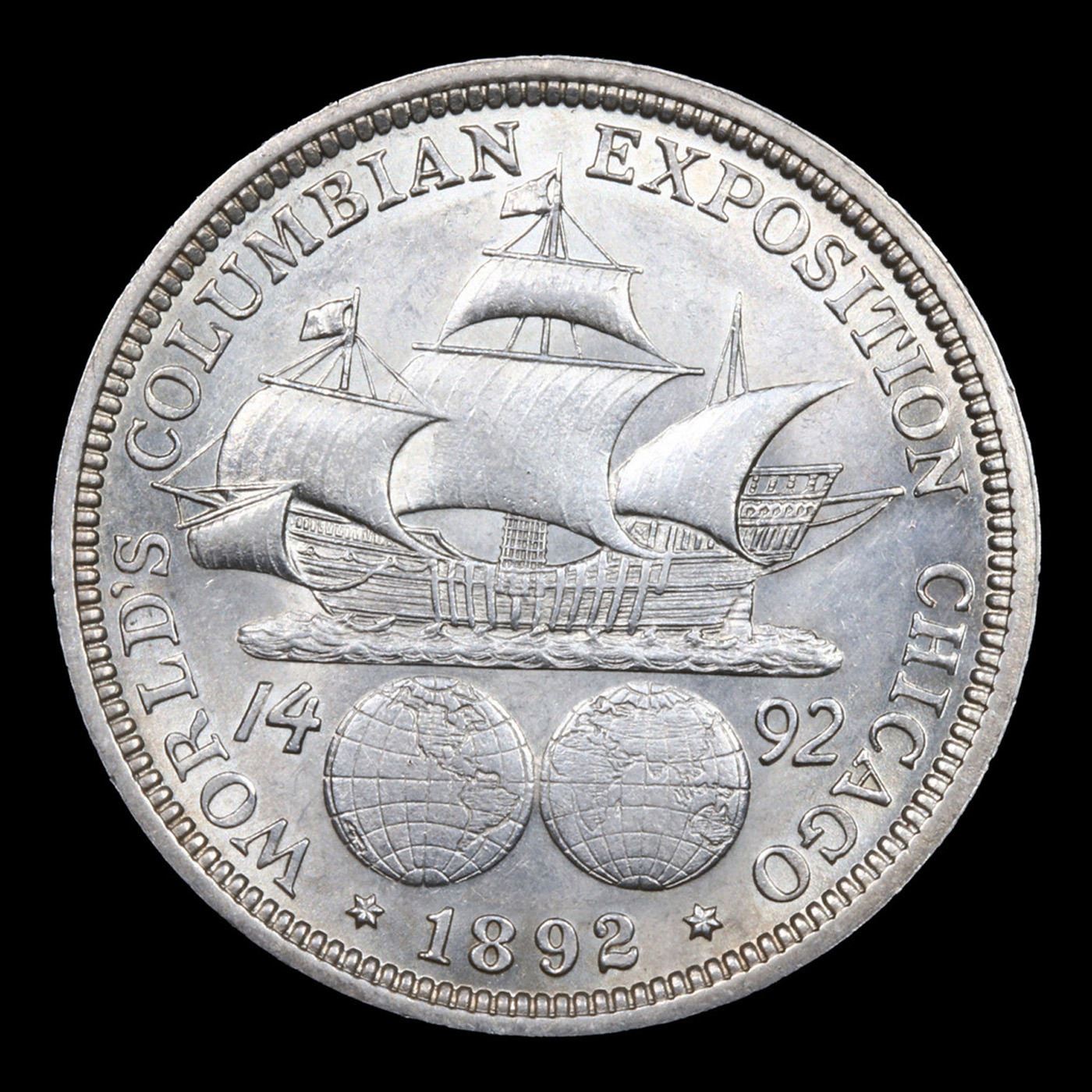 1892 Columbian Old Commem Half Dollar 50c Grades Choice+ Unc. The Columbus Half Dollar along with the Isabella Quarter were Minted in Honor of the 400th Anniversary of Columbus' Voyage to the New World. It was First Distributed at the Worlds Fair Honoring that Voyage. When Examining a Columbian Exposition Half Dollar, the First Points to Show Wear are Columbus’ Eyebrow, Cheek and the Hair Behind his Forehead and Jaw. On the Reverse, Check the Foresail and Sainsail, as well as the Right Side of the Eastern Hemisphere.