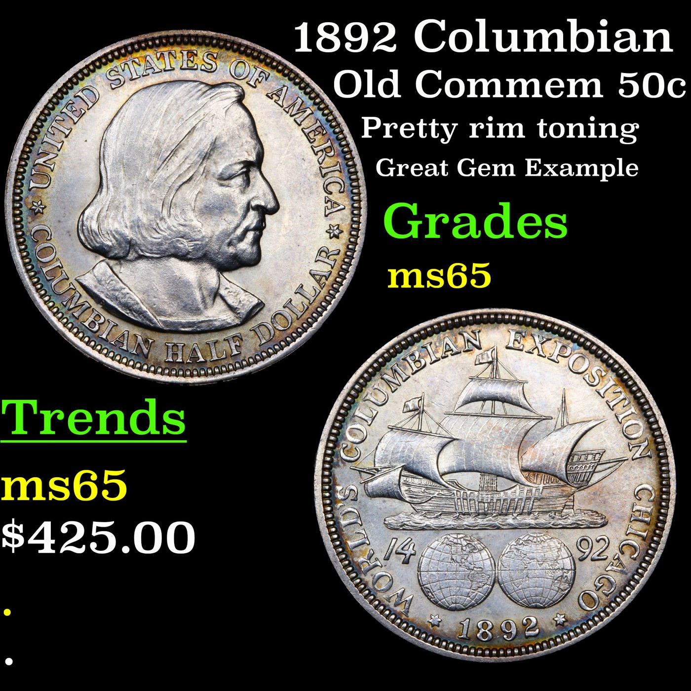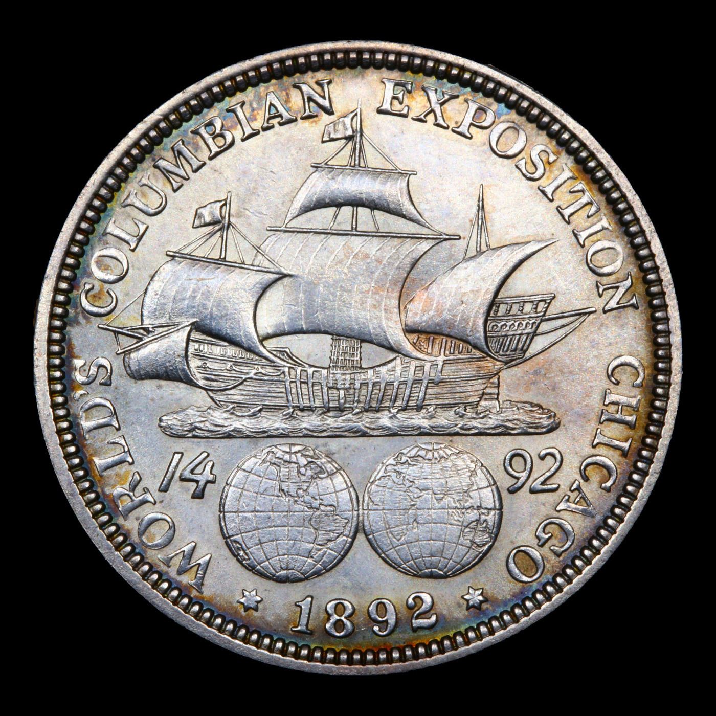 1892 Columbian Old Commem Half Dollar 50c Grades GEM Unc. The Columbus Half Dollar along with the Isabella Quarter were Minted in Honor of the 400th Anniversary of Columbus' Voyage to the New World. It was First Distributed at the Worlds Fair Honoring that Voyage. When Examining a Columbian Exposition Half Dollar, the First Points to Show Wear are Columbus’ Eyebrow, Cheek and the Hair Behind his Forehead and Jaw. On the Reverse, Check the Foresail and Sainsail, as well as the Right Side of the Eastern Hemisphere.