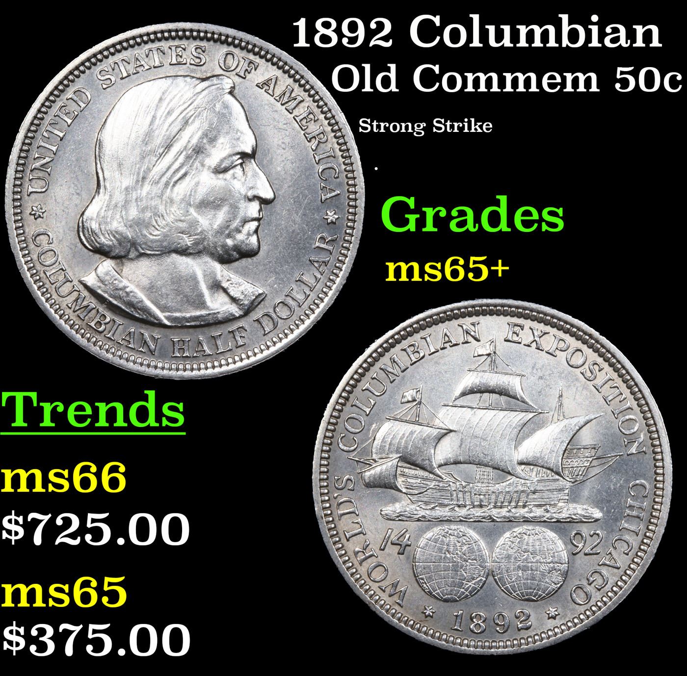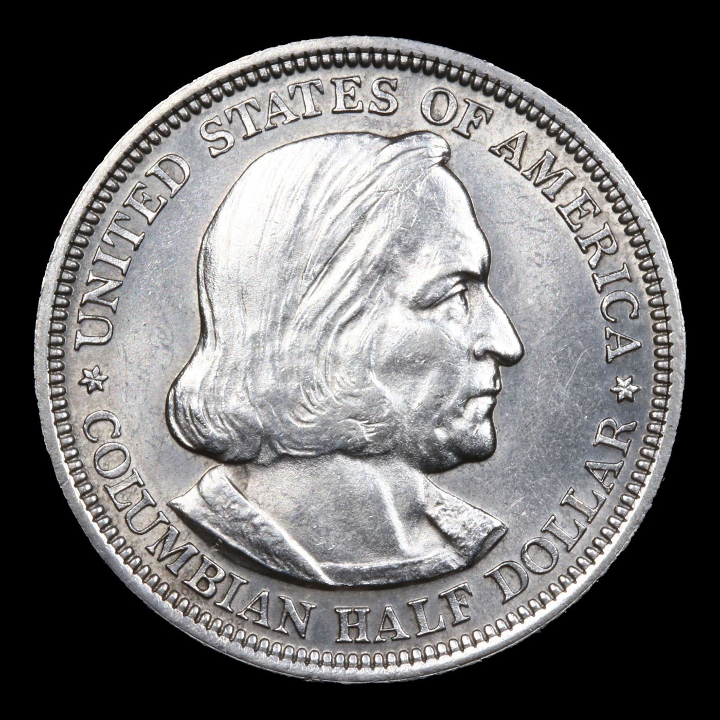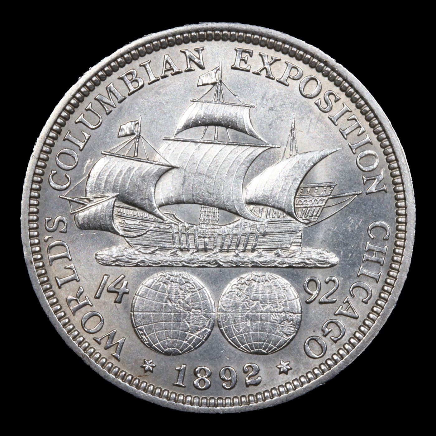 1892 Columbian Old Commem Half Dollar 50c Grades GEM+ Unc. The Columbus Half Dollar along with the Isabella Quarter were Minted in Honor of the 400th Anniversary of Columbus' Voyage to the New World. It was First Distributed at the Worlds Fair Honoring that Voyage. When Examining a Columbian Exposition Half Dollar, the First Points to Show Wear are Columbus’ Eyebrow, Cheek and the Hair Behind his Forehead and Jaw. On the Reverse, Check the Foresail and Sainsail, as well as the Right Side of the Eastern Hemisphere.