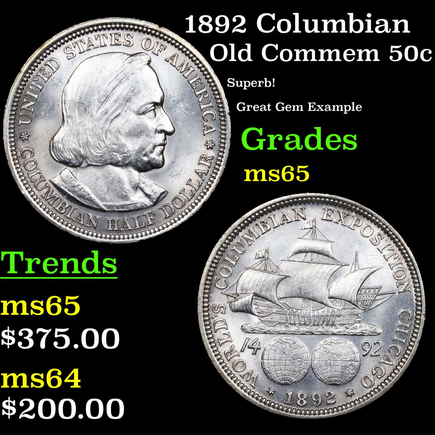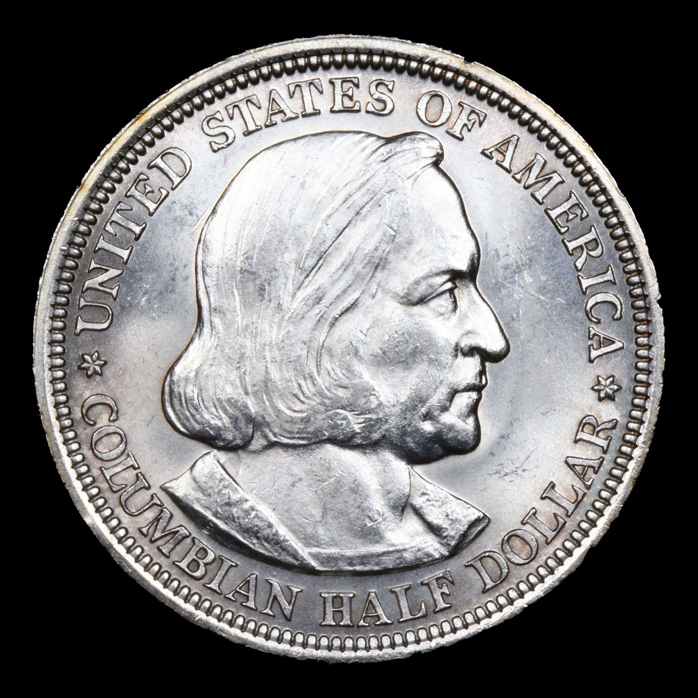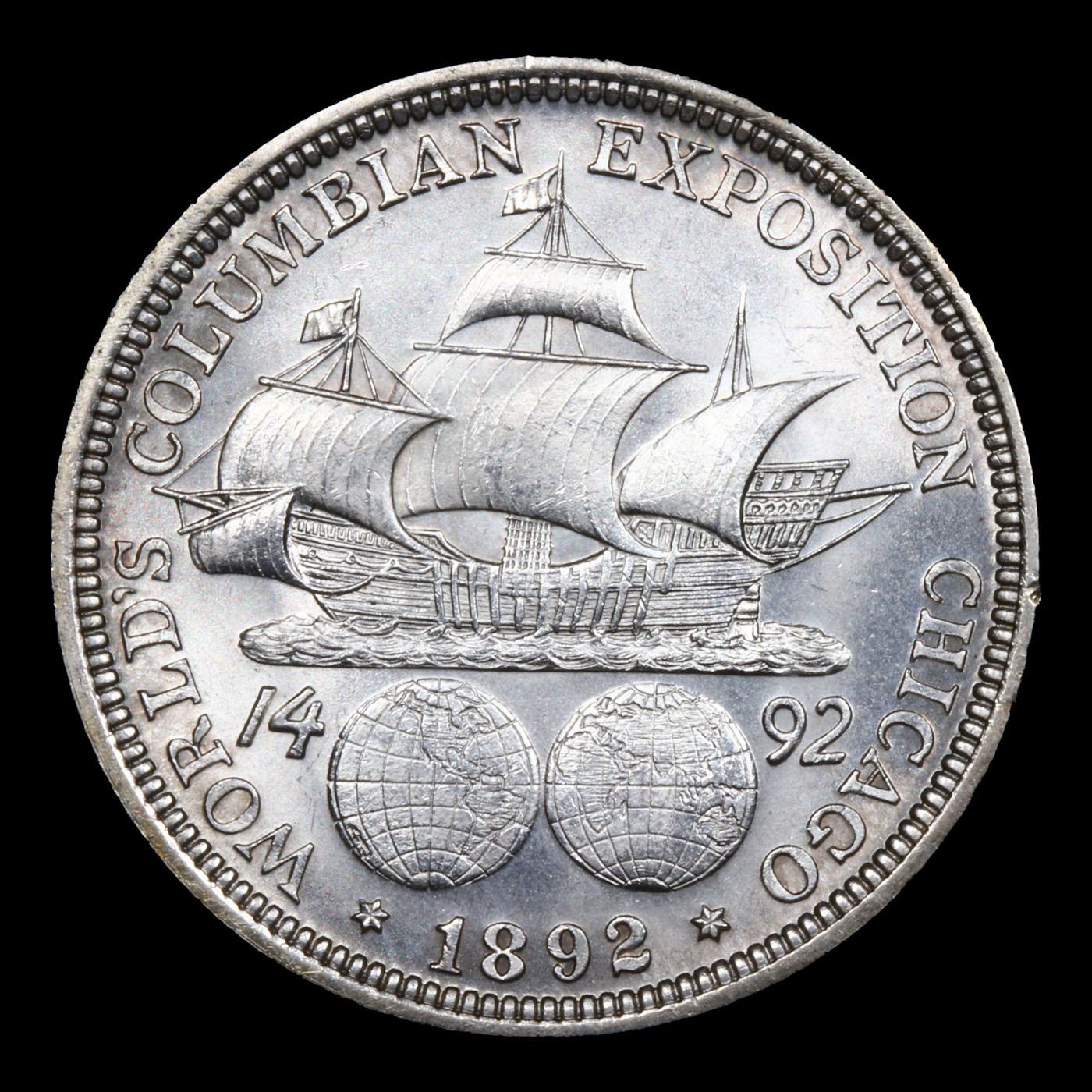 1892 Columbian Old Commem Half Dollar 50c Grades GEM Unc. The Columbus Half Dollar along with the Isabella Quarter were Minted in Honor of the 400th Anniversary of Columbus' Voyage to the New World. It was First Distributed at the Worlds Fair Honoring that Voyage. When Examining a Columbian Exposition Half Dollar, the First Points to Show Wear are Columbus’ Eyebrow, Cheek and the Hair Behind his Forehead and Jaw. On the Reverse, Check the Foresail and Sainsail, as well as the Right Side of the Eastern Hemisphere.