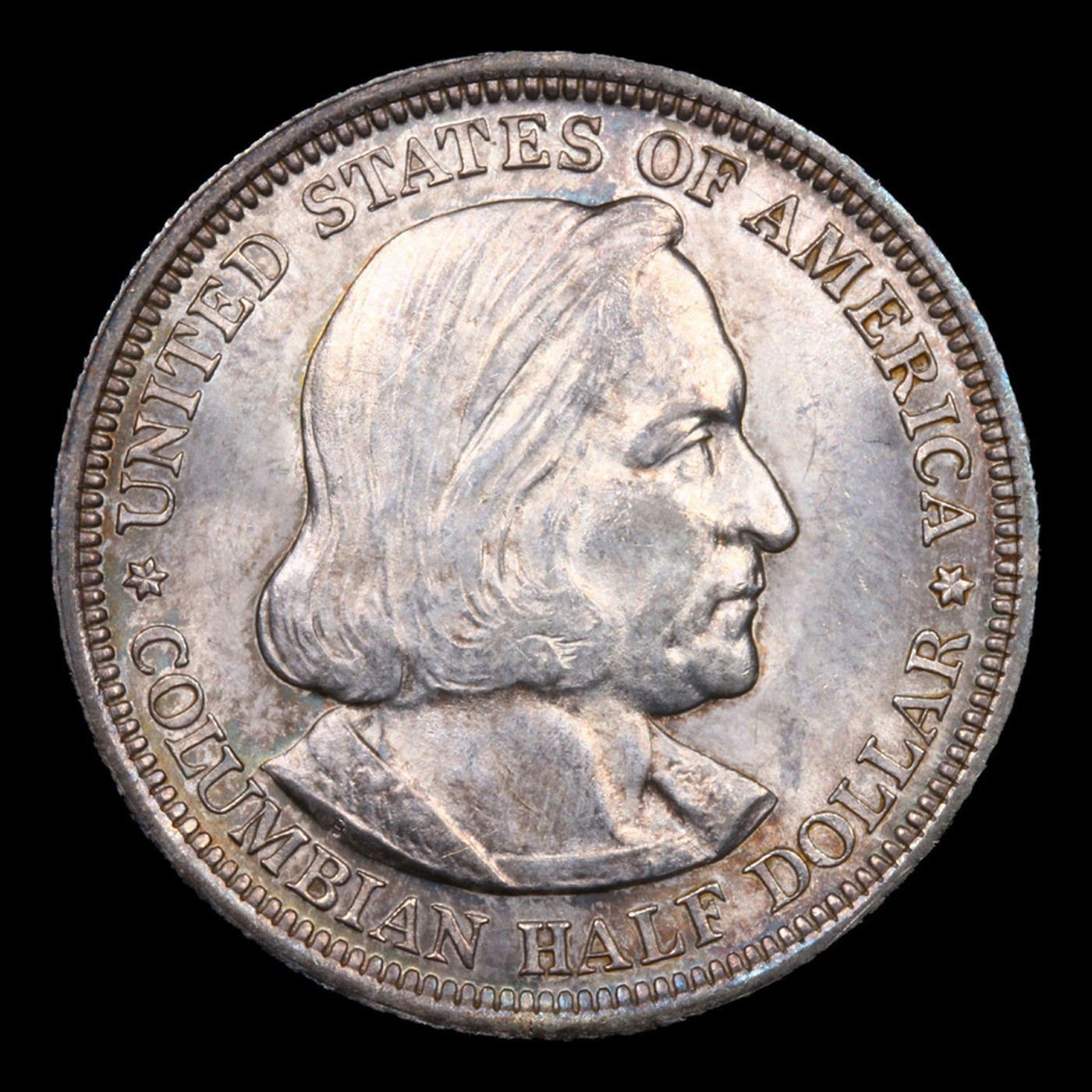 1892 Columbian Old Commem Half Dollar 50c Grades GEM Unc. The Columbus Half Dollar along with the Isabella Quarter were Minted in Honor of the 400th Anniversary of Columbus' Voyage to the New World. It was First Distributed at the Worlds Fair Honoring that Voyage. When Examining a Columbian Exposition Half Dollar, the First Points to Show Wear are Columbus’ Eyebrow, Cheek and the Hair Behind his Forehead and Jaw. On the Reverse, Check the Foresail and Sainsail, as well as the Right Side of the Eastern Hemisphere.