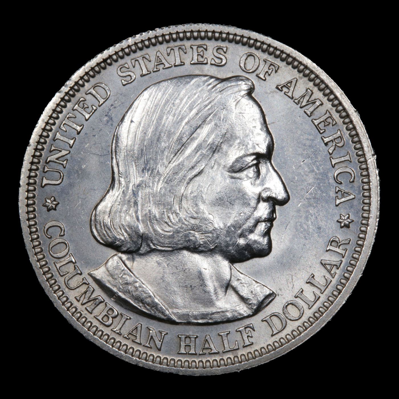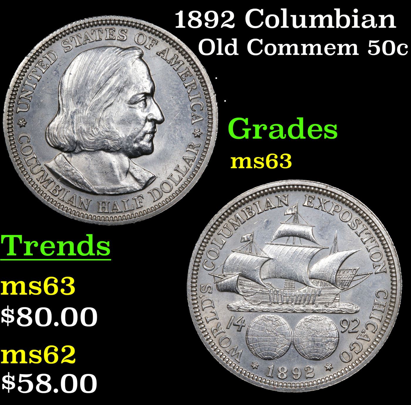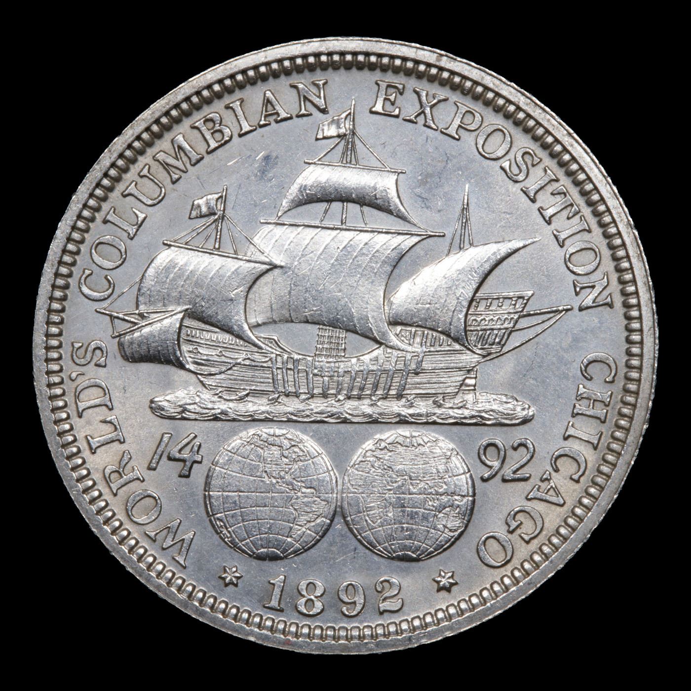 1892 Columbian Old Commem Half Dollar 50c Grades Select Unc. The Columbus Half Dollar along with the Isabella Quarter were Minted in Honor of the 400th Anniversary of Columbus' Voyage to the New World. It was First Distributed at the Worlds Fair Honoring that Voyage. When Examining a Columbian Exposition Half Dollar, the First Points to Show Wear are Columbus’ Eyebrow, Cheek and the Hair Behind his Forehead and Jaw. On the Reverse, Check the Foresail and Sainsail, as well as the Right Side of the Eastern Hemisphere.