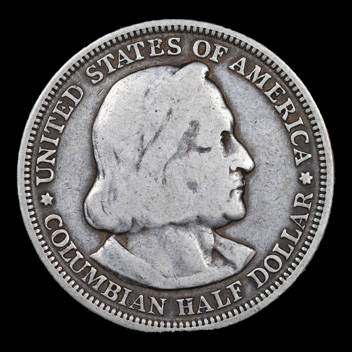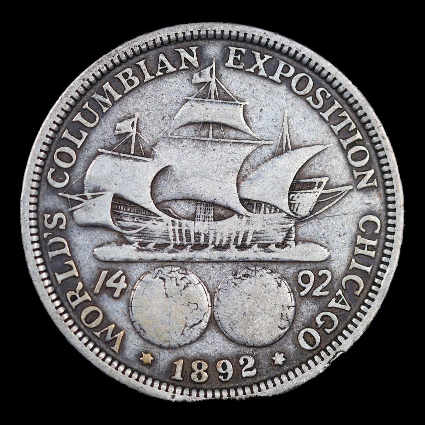 1892 Columbian Old Commem Half Dollar 50c Grades vf+. The Columbus Half Dollar along with the Isabella Quarter were Minted in Honor of the 400th Anniversary of Columbus' Voyage to the New World. It was First Distributed at the Worlds Fair Honoring that Voyage. When Examining a Columbian Exposition Half Dollar, the First Points to Show Wear are Columbus’ Eyebrow, Cheek and the Hair Behind his Forehead and Jaw. On the Reverse, Check the Foresail and Sainsail, as well as the Right Side of the Eastern Hemisphere.