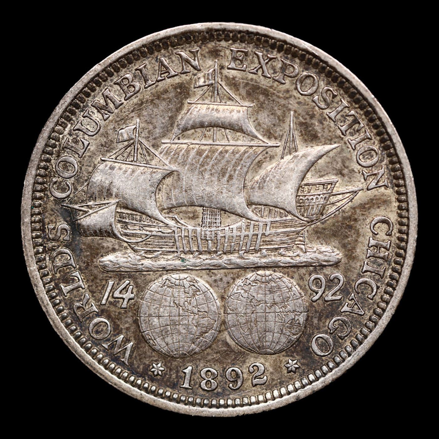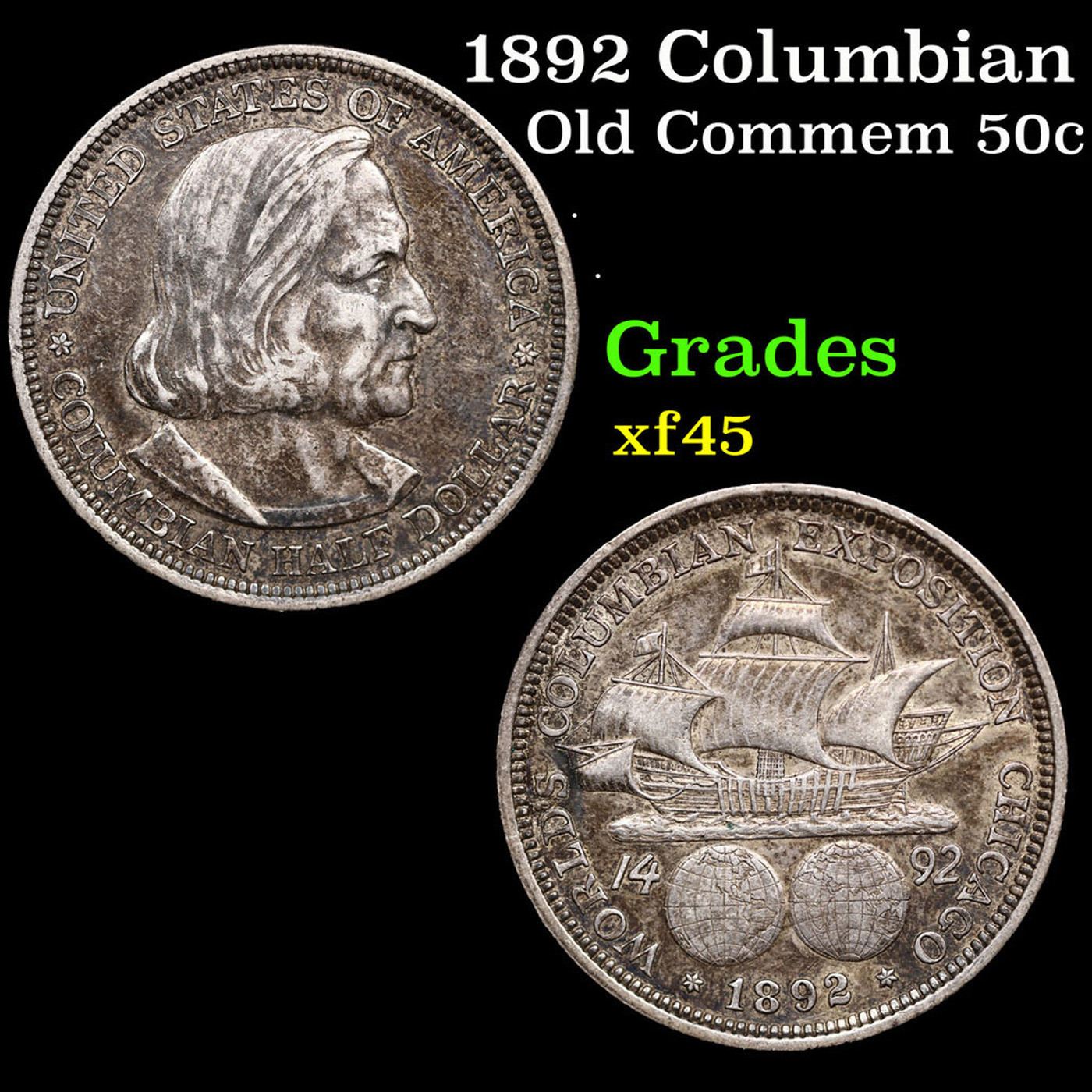 1892 Columbian Old Commem Half Dollar 50c Grades xf+. The Columbus Half Dollar along with the Isabella Quarter were Minted in Honor of the 400th Anniversary of Columbus' Voyage to the New World. It was First Distributed at the Worlds Fair Honoring that Voyage. When Examining a Columbian Exposition Half Dollar, the First Points to Show Wear are Columbus’ Eyebrow, Cheek and the Hair Behind his Forehead and Jaw. On the Reverse, Check the Foresail and Sainsail, as well as the Right Side of the Eastern Hemisphere.
