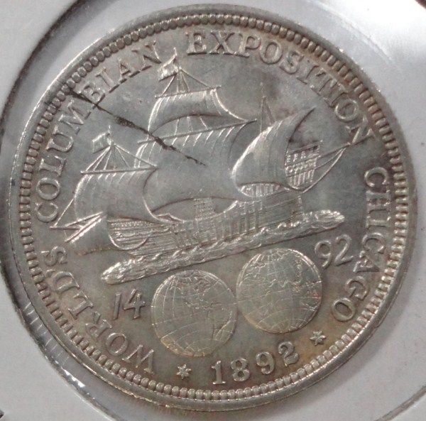 reverse has planchet flaws from middle sail thru rim. dirt has accumulated is reason for black line