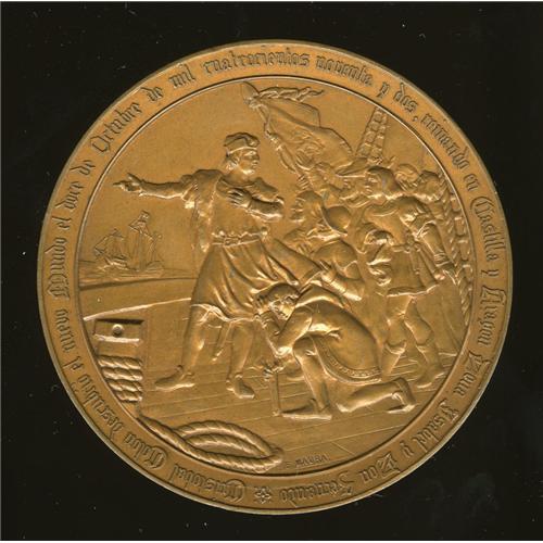 <B>1892 Columbus Discovery of America Medal MS60 Rim Filed Uncertified.</B></I> 70.3mm. Bronze, 134.2 grams. Vivies-539. Madrid mint. Dies by B. Maura. A well executed chocolate-brown medal. In exquisite condition aside from intermittent minor file marks across the rims.<BR><I>From The Troy Wiseman Collection.</B></I>