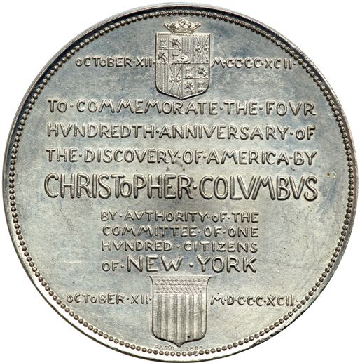 1892 Committee of One Hundred Citizens Medal in Custom Holder. Eglit-98A. NGC graded MS-64. White Metal, 57mm. As last lot. This piece is housed in a custom, acryllic holder, with description engraved into holder. Medal comes with NGC Photocertificate.
