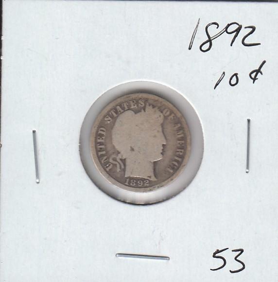 1892 DIME 10 CENT BARBER SILVER