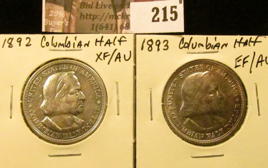 1892 EF-AU & 1893 EF-AU Columbian Exposition Commemorative Half Dollars.