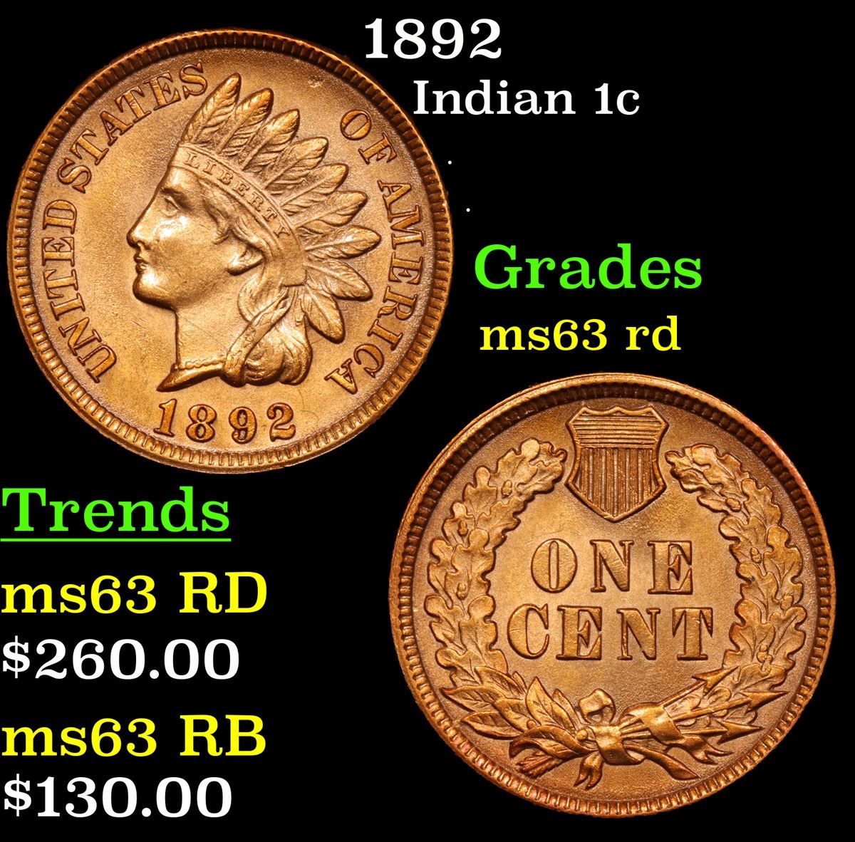 1892 . . Indian Cent 1c Grades Select Unc RD.