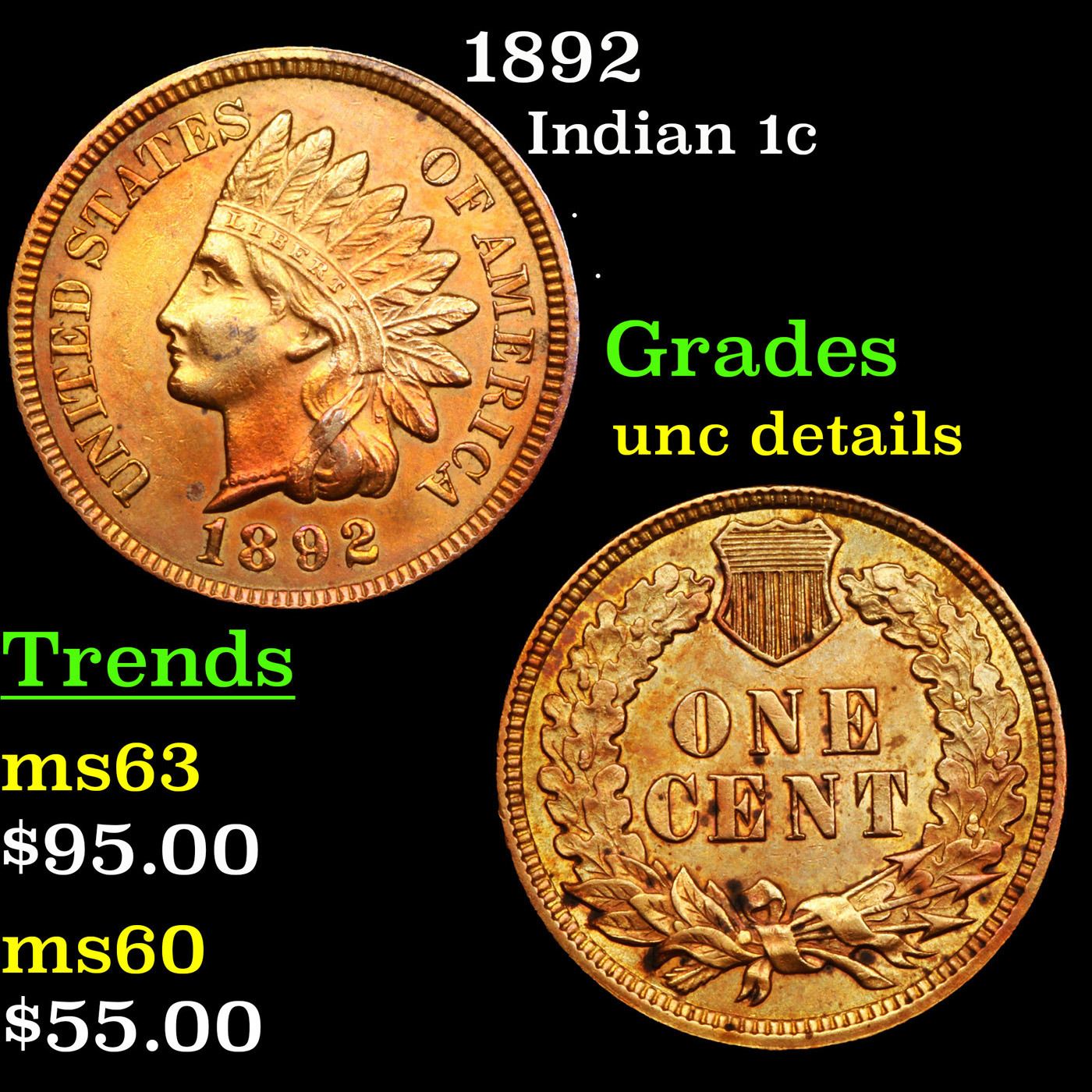 1892 Indian Cent 1c Grades Unc Details.