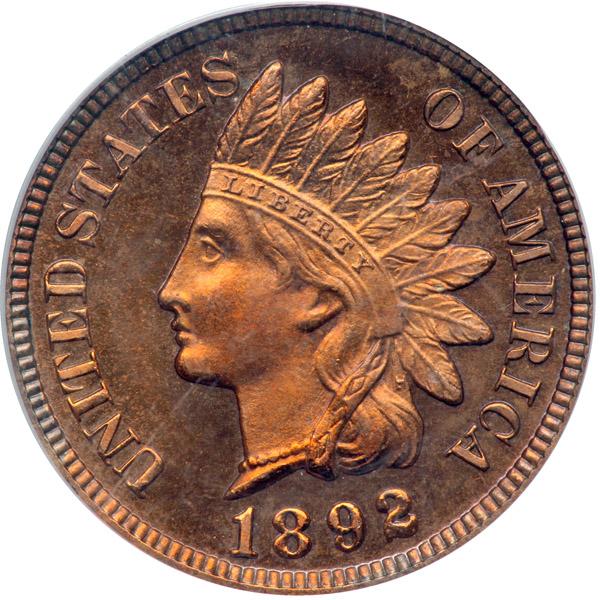 1892. PCGS graded Proof 65 Red. Only 2,745 struck. Nice rich red colors. Pop 43; 14 finer (PCGS # 2365) .