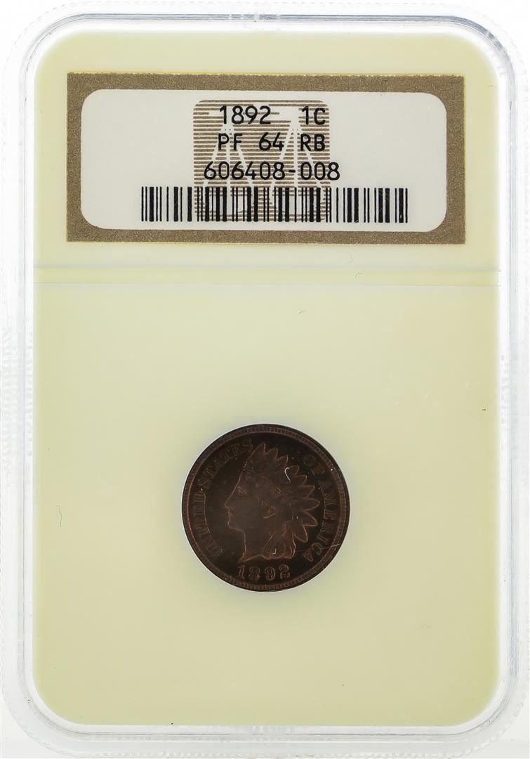 One 1892 Indian Head Cent Coin NGC PF64 RB. NGC Certified.