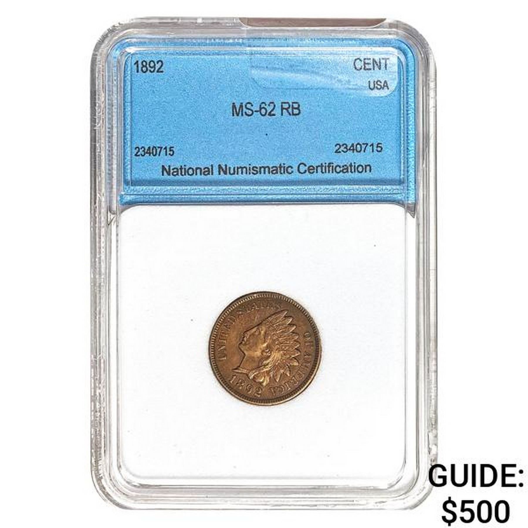 1892 Indian Head Cent NNC MS-62 RB