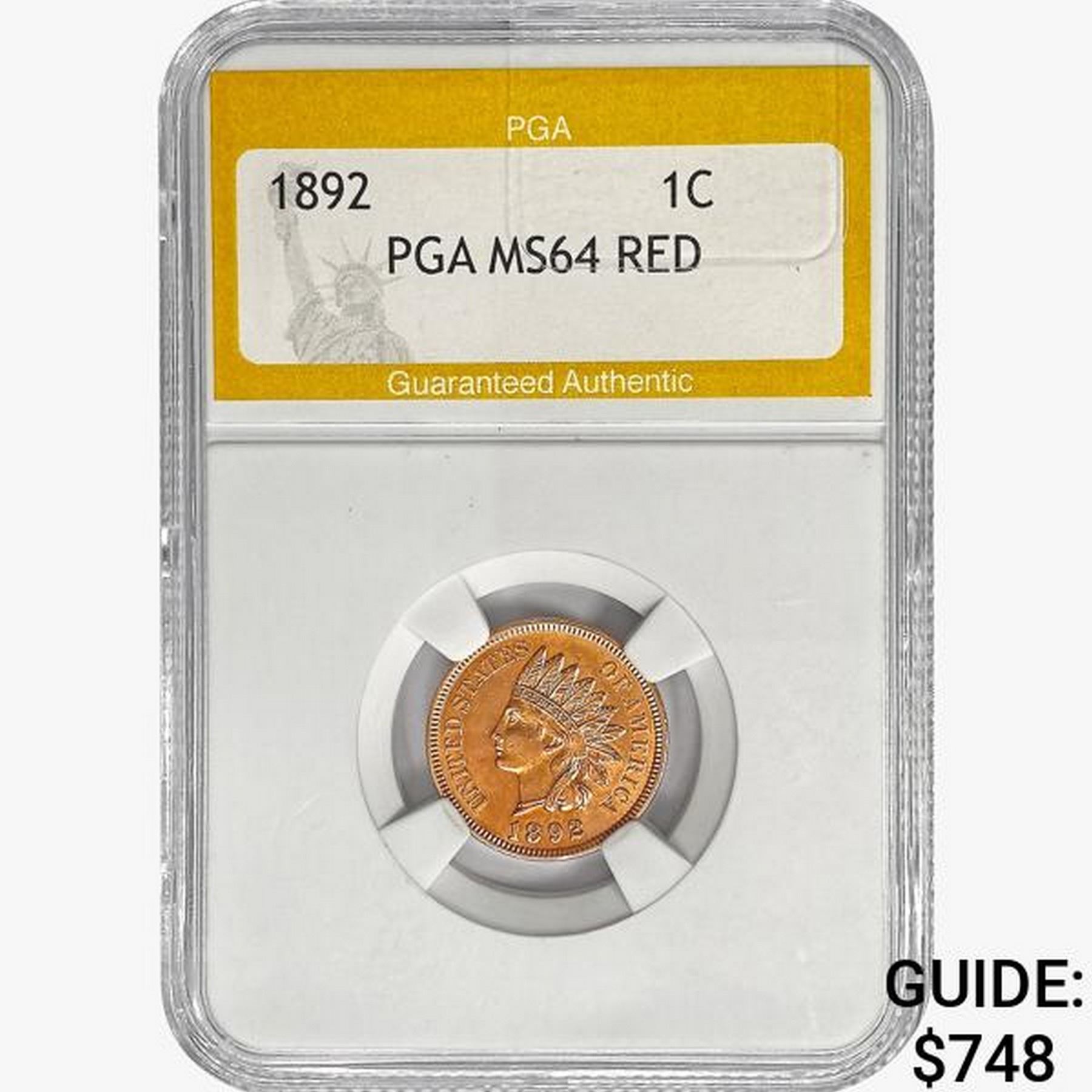 1892 Indian Head Cent PGA MS64 RED