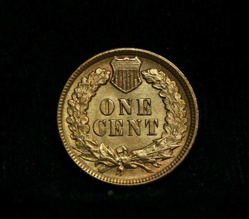 A very attractive 1800's Indian Cent. Coin World's Coin Values lists ms63 RB at $90 They do not list Red for ms63 ms64 RD is listed at $425 and The Wholesale Greysheet lists ms63 BN at $50, they do not list RB or RD at ms63. PCGS lists ms63 RD at $155. Estimated Value $90 (that's 60% of PCGS figure)