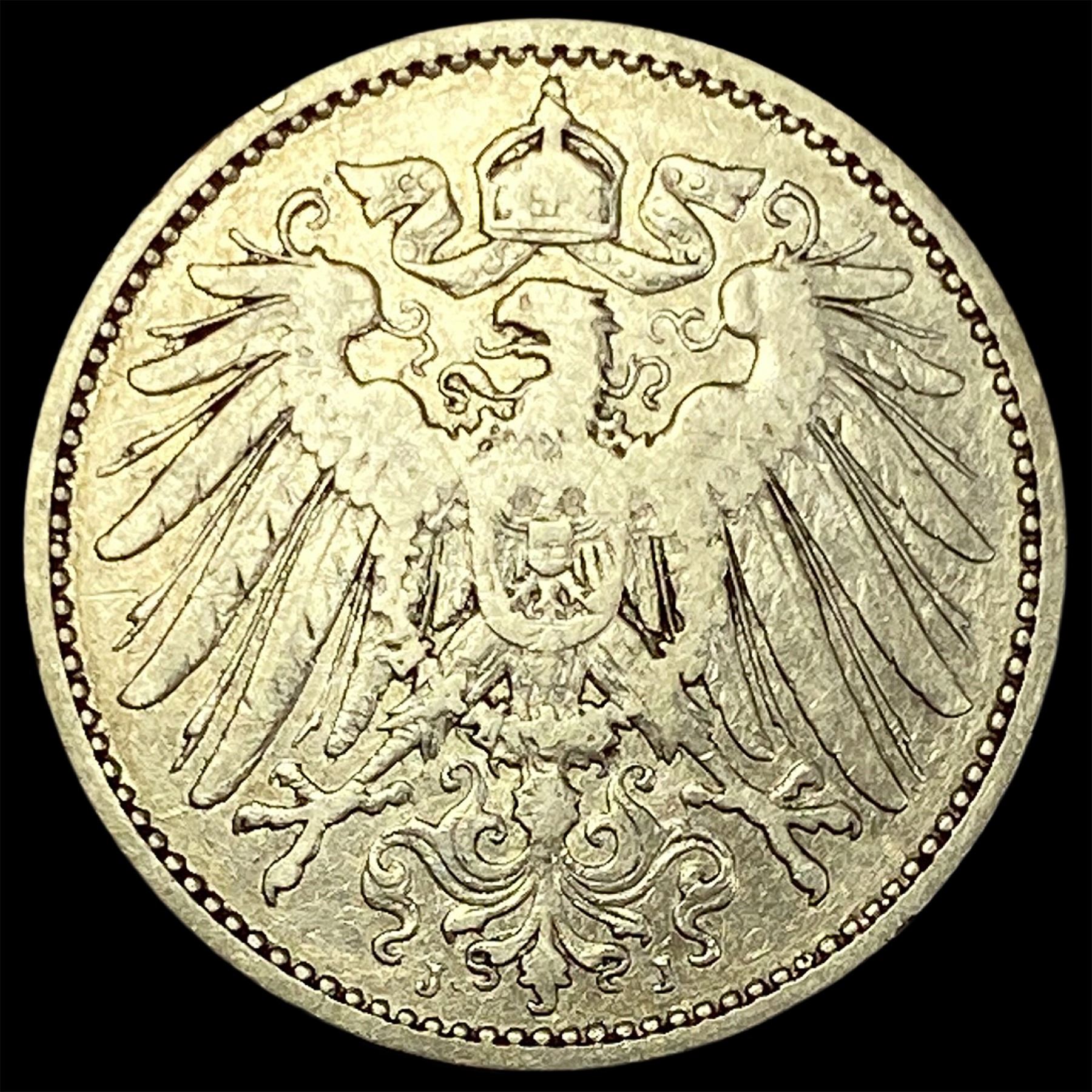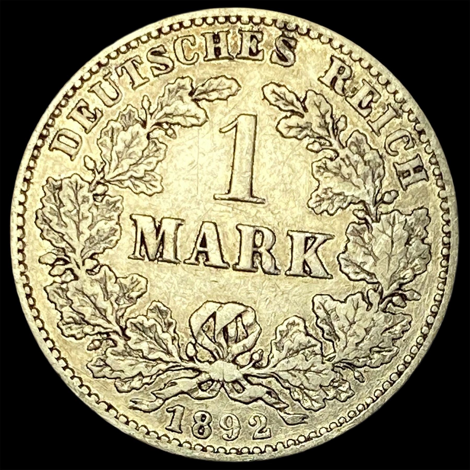 1892-J Germany Silver 1 Reichsmark NEARLY UNCIRCULATED