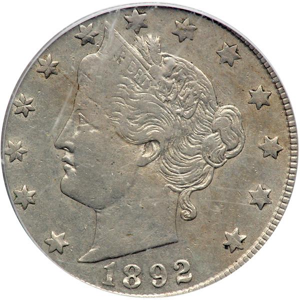 1892 Liberty Nickel. PCGS graded EF-45 Mint Error. Struck on Foreign Planchet, unusual early Liberty nickel error and certainly worth a premium (PCGS # 3853) .