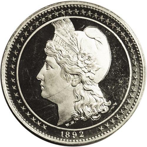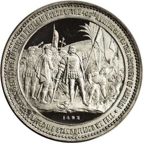 <B>1892 Liberty Head Dollar, Low Relief.</B></I> This is one of the many pieces issued to commemorate the discovery of America by Columbus in 1492. We believe this piece to be the scarcer of the HK-222 Liberty head dollars engraved by George T Morgan. This piece is unlisted in HK with the low relief on both sides. The current market value is unknown, as we have seen no listing for this type.