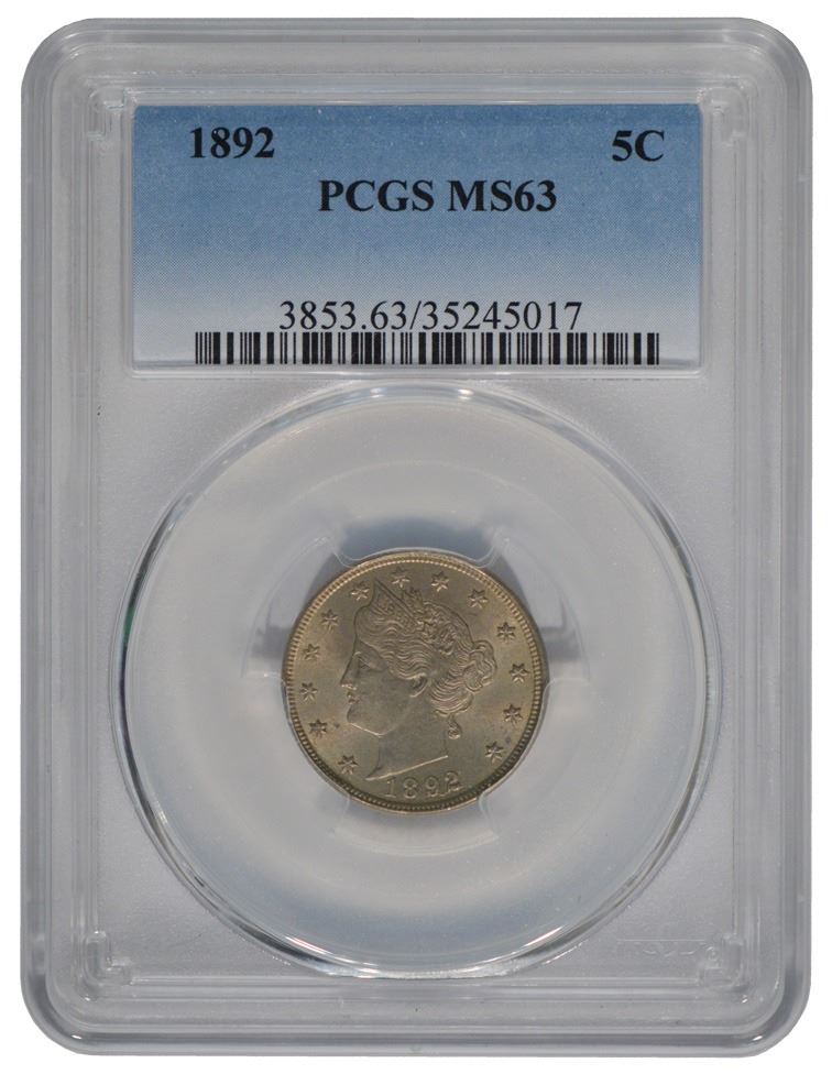 One 1892 Liberty Nickel Coin PCGS MS63.