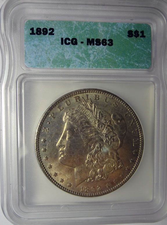 1892 MORGAN DOLLAR ICG MS63 SUPER COLOR