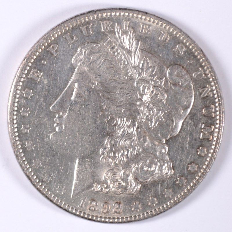 1892 MORGAN SILVER DOLLAR, MS-60 LOOKS PROOF-LIKE