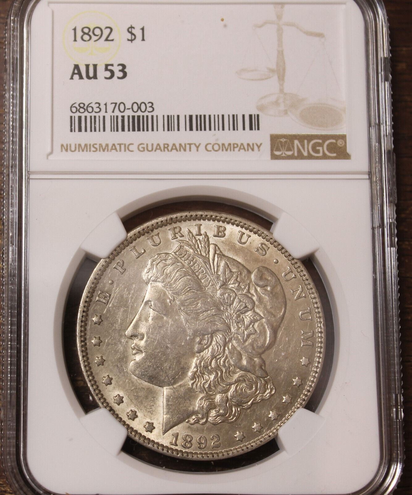 1892 Morgan Dollar AU-53 NGC