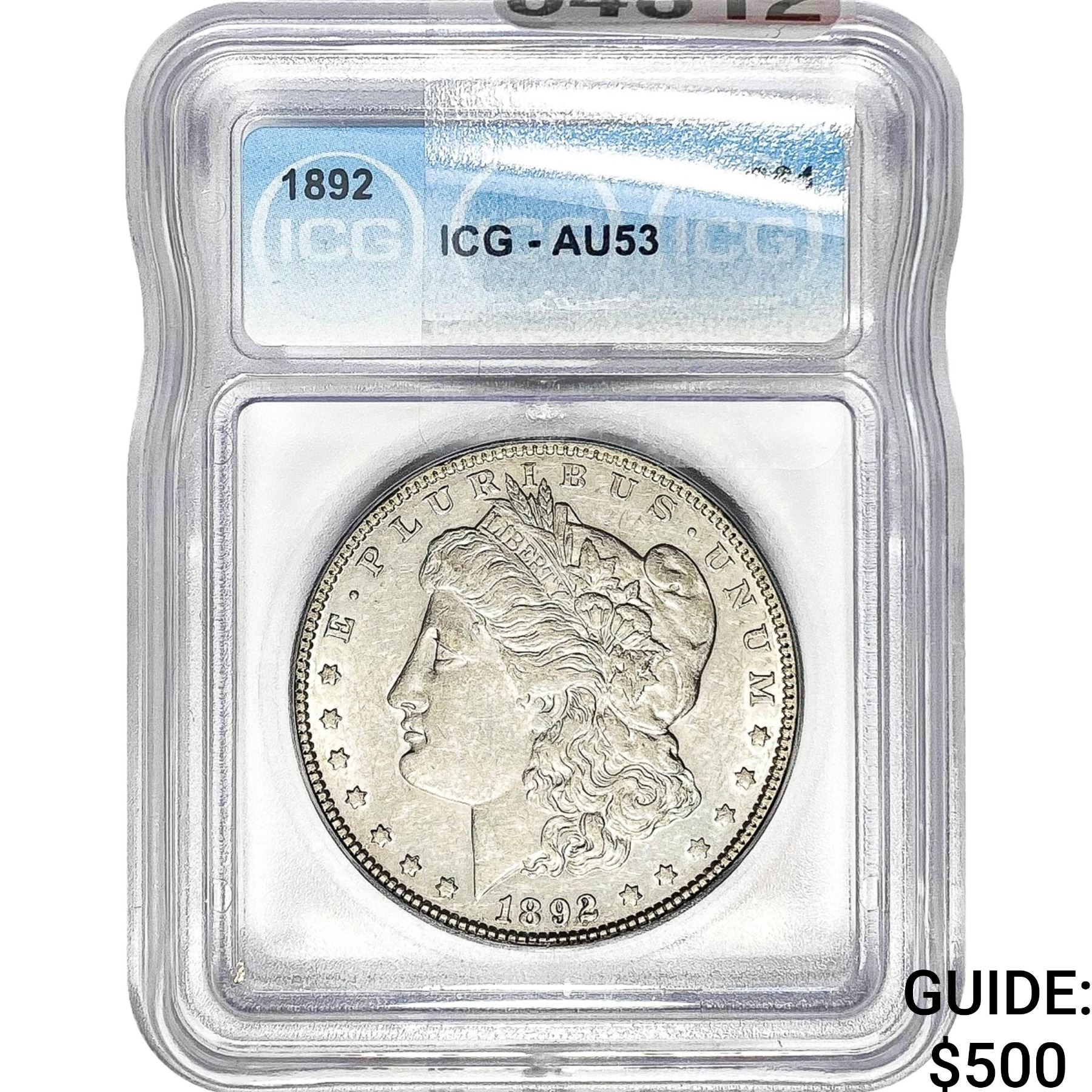 1892 Morgan Silver Dollar ICG AU53