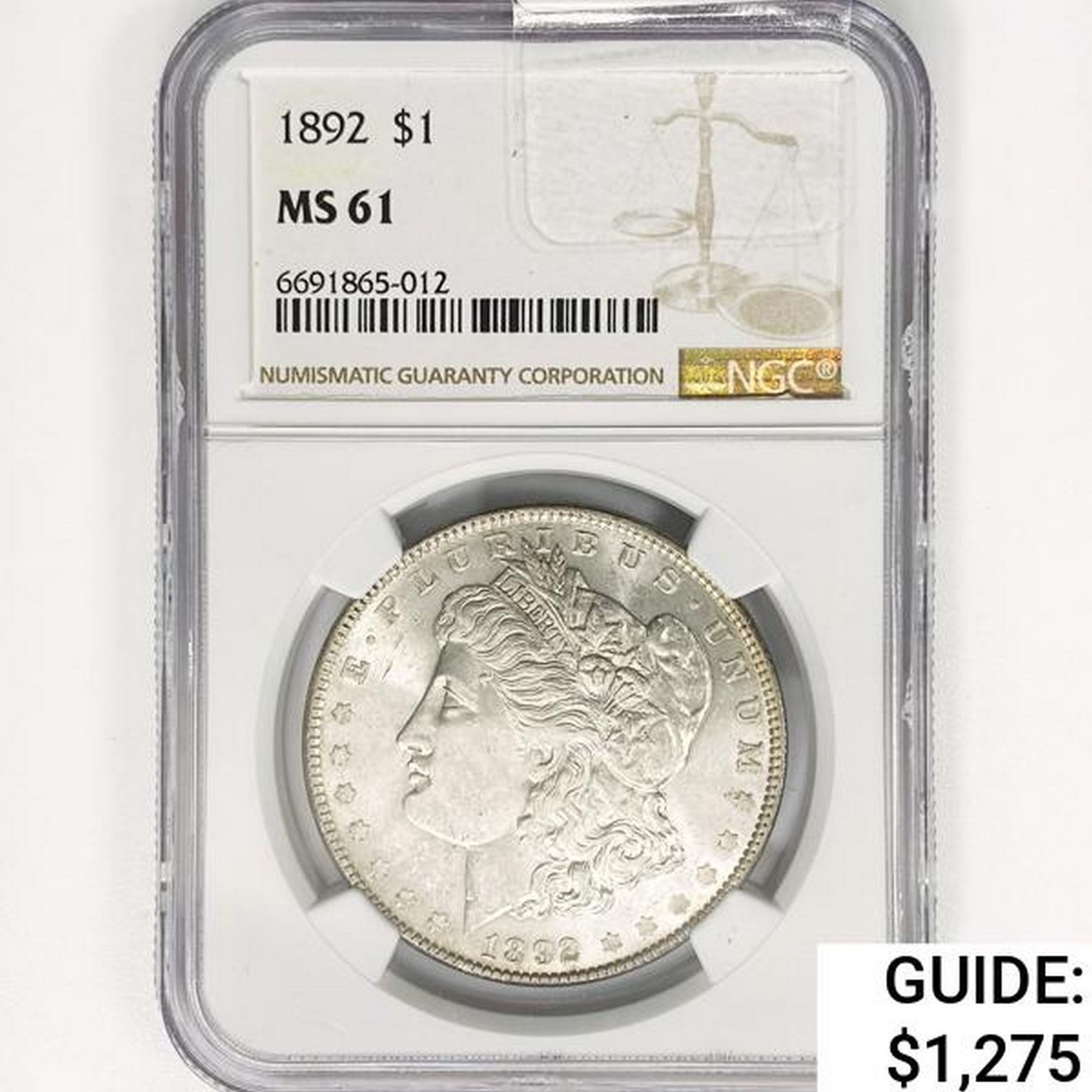 1892 Morgan Silver Dollar NGC MS61