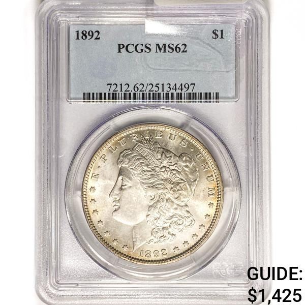 1892 Morgan Silver Dollar PCGS MS62