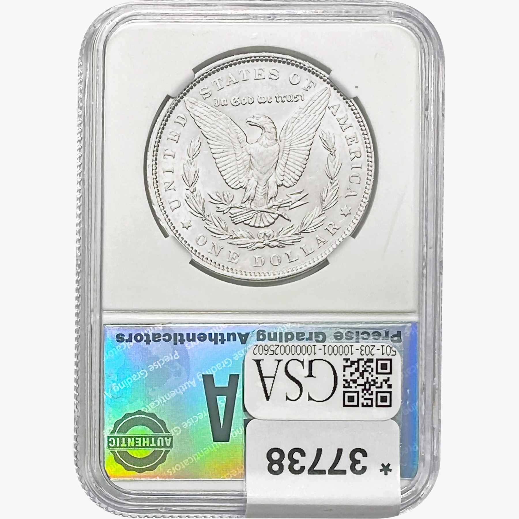COINS AND CURRENCY LISTED IN GSA’S CATALOG AS GRADED AND ENCAPSULATED BY PCGS, NGC, ANACS, ICG, PCGS CURRENCY, PMG, PCGS BANKNOTE GRADING, CMC OR ANY OTHER THIRD-PARTY GRADING SERVICE ARE LIKEWISE SOLD “AS-IS” EXCEPT AS EXPRESSLY SET FORTH HEREIN. ALL THIRD-PARTY GRADING SERVICE GUARANTEES, INCLUDING AUTHENTICITY, ARE THE SOLE RESPONSIBILITY OF THE THIRD-PARTY GRADING SERVICE AND NOT WARRANTIES OR GUARANTEES OF GSA. BIDDERS SHOULD CONTACT THESE THIRD-PARTY GRADING SERVICES DIRECTLY WITH RESPECT TO ANY CLAIMS OR QUESTIONS THEY MAY HAVE CONCERNING THEIR GUARANTEES AND WARRANTIES. BIDDERS ACKNOWLEDGE AND AGREE THAT AUCTIONEER IS NOT BOUND BY OR LIABLE FOR ANY OPINION OR CERTIFICATION BY ANY THIRD-PARTY GRADING SERVICE. REMOVAL OF A PRODUCT FROM ITS PROTECTIVE CASING OR HOLDER OR ALTERATION OF ANY COIN HOLDER WAIVES ALL RIGHTS CONCERNING THE PRODUCT CONTAINED THEREIN.